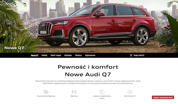 Salony i serwisy Audi w Polsce są cały czas otwarte i pozwalają klientom dokonać wyboru swojego nowego samochodu. Jednak w trosce o zdrowie klientów w tak trudnych czasach i dla ułatwienia wyboru nowego modelu, Audi uruchomiło specjalny dodatek do konfiguratora – Audi Online TV. Marka w ten sposób ułatwia proces wyboru, w łatwy sposób prezentując szczegóły gamy modelowej.