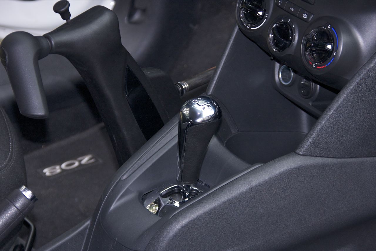 Na kole kierownicy znalazła się homologowana gałka obrotowa, umożliwiająca bezpieczne prowadzenie jedną ręką. Pod prawą dłonią, obok drążka skrzyni biegów zamontowano teleskopowy manipulator gazu i hamulca. Płynnie obracająca się dźwignia z przełożeniem ślimakowym naciska pedał gazu, ruch całego mechanizmu do przodu przenosi komendy prawej ręki na pedał hamulca. Trzecia funkcja wynika z procedury uruchamiania silnika w samochodach wyposażonych w automat, gdzie zawsze wymagane jest trzymanie nogi na hamulcu podczas zapłonu na biegu jałowym. Tu na potrzeby kierowców z dysfunkcją ruchową nóg wprowadzono klawisz na manipulatorze, blokujący go w pozycji hamowania na czas przekręcania prawą ręką kluczyka zapłonu. Po uruchomieniu silnika blokada rozłącza się.