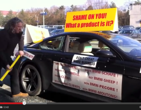 W halach genewskich Palexpo producenci dwoją się i troją, wydają grube pliki euro, aby zaprezentować godnie swoje najnowsze modele, a tymczasem przed głównym wejściem właściciel tego BMW M6 coupe, za pomocą młota i siekiery demoluje własne auto warte ponad 300 tys. zł w akcie protestu przeciw złej jakości i niefachowej obsłudze serwisu.