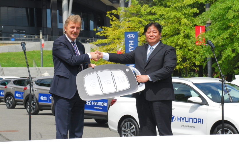 Sukwon Kim – Prezes Hyundai Motor Poland przekazał podczas ceremonii symboliczny klucz na ręce Prezesa Polskiego związku Piłki Nożnej, Pana Zbigniewa Bońka.