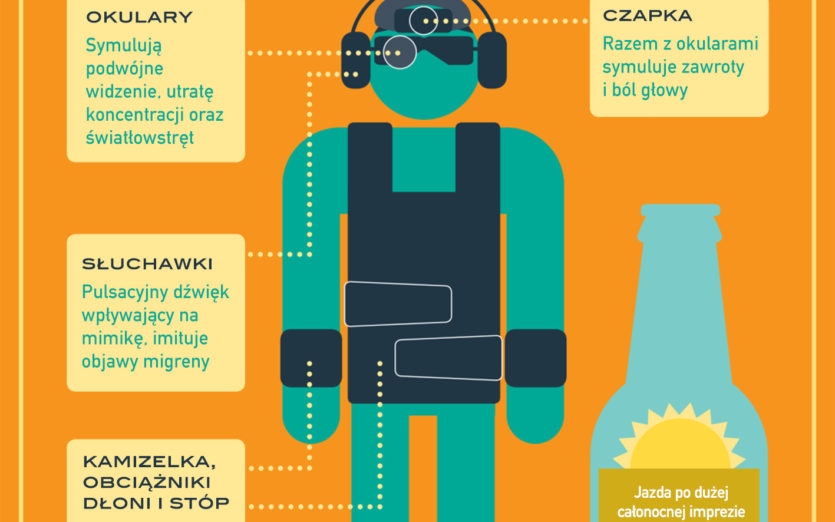 Mogą tego doświadczyć uczestnicy programu Ford Driving Skills For Life. Uczniowie i studenci zakładają specjalny kac-kostium opracowany przez renomowany Instytut Meyer Hentschel w Niemczech. Kostium składa się ze specjalnej kamizelki, opasek na nadgarstki i kostki, czapki, okularów oraz słuchawek – symulują one objawy zmęczenia, zawroty głowy, pulsowanie w skroniach i trudności z koncentracją.