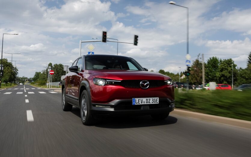Mazda MX-30 to kompaktowy crossover, który został najchętniej wybieraną elektryczną nowością na rynku polskim w 2020 r. Już w podstawowej wersji oferuje bogate wyposażenie obejmujące m.in. kolorowy wyświetlacz head-up na przedniej szybie, nawigację satelitarną, interfejs Apple CarPlay/Android Auto, 18-calowe felgi z lekkich stopów, kamerę cofania, adaptacyjny tempomat i pakiet systemów bezpieczeństwa i-Activsense. We wnętrzu wykonanym w jakości premium, 20% materiałów pochodzi z recyklingu. Mazda MX-30 z silnikiem o mocy 145 KM i akumulatorem o pojemności 35,5 kWh dostępna jest od 132 900 zł z Ekodopłatą Mazdy.