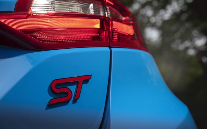 Dolna kratka wlotu powietrza i chłodnica powietrza doładowania turbosprężarki są wykończone w matowej czerni. Oznaczenia ST na zewnątrz posiadają unikalną czarną emaliowaną obwódkę, która dodatkowo podkreśla status edycji specjalnej modelu.