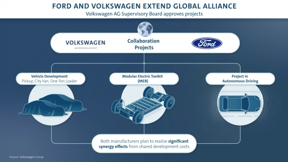 Zapadły ważne decyzje dotyczące globalnej współpracy Forda i Volkswagena: Rada Nadzorcza koncernu Volkswagen AG dała zielone światło dla kolejnych projektów w ramach nawiązanej w ubiegłym roku współpracy z Ford Motor Company. Wkrótce obydwie strony podpiszą odpowiednie umowy – w pierwszym etapie plany przewidują realizację projektów z zakresu elektryfikacji pojazdów oraz w dziedzinie lekkich samochodów dostawczych.
